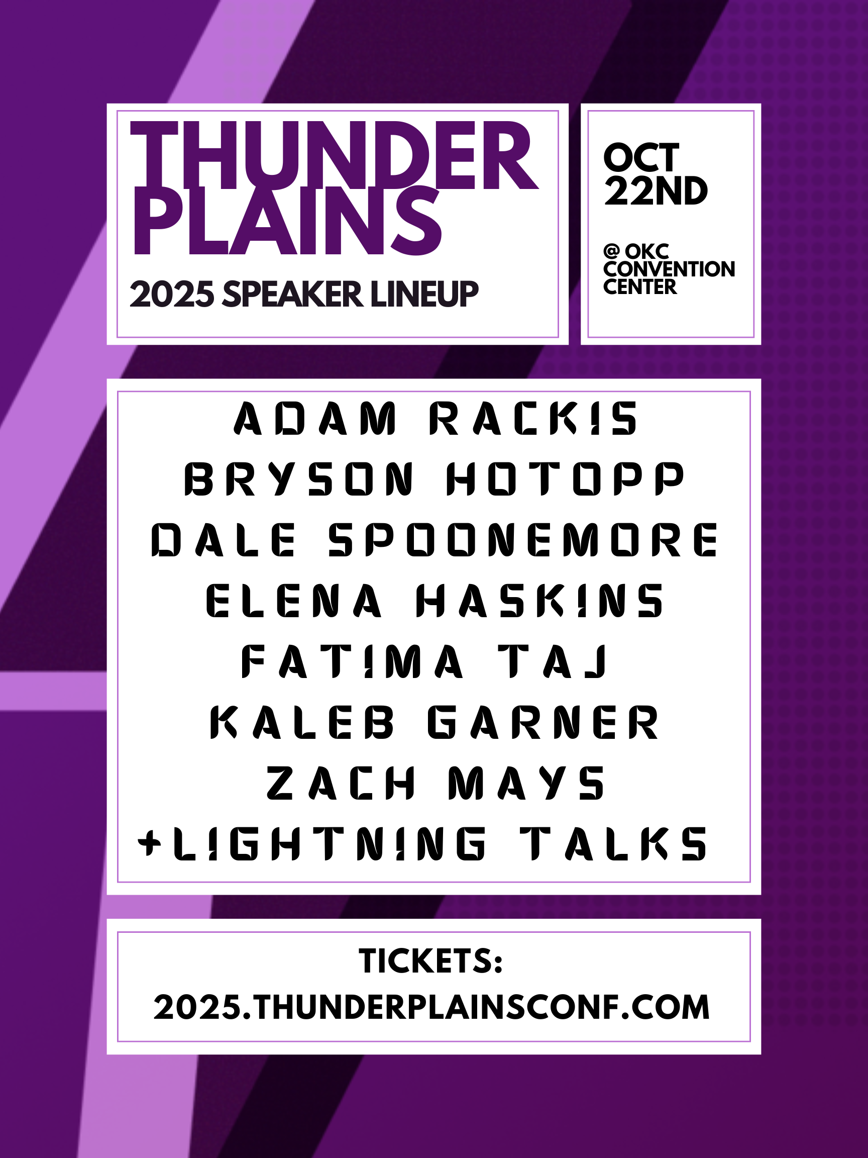 ⚡ Tomorrow is the day! ThunderPlains 2025 kicks off on October 22nd at the OKC Convention Center. We’re excited to welcome an amazing lineup of speakers ready to share their knowledge, stories, and insights. Get ready for a full day of learning, inspiration, and connection with the tech community....Read more